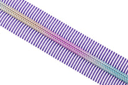 This Purple Zebra Stripes size #5 zipper tape features a rainbow nylon coil and comes in your choice of 1, 3, or 5 yards.